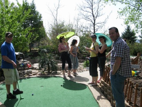 Okay, okay, I didn’t mean to leave you all in the dark. Back to the beginning: My pal Nick was visiting, and we went to a car show where we met the guy who owns a Cadillac known as Batmobile with which I am familiar, played mini-golf (see above), watched a DVD, and hung out with friends. We ate some, we drank some, we drove around some. I introduced Nick to egg creams at brunch one morning. That right there means I did a good job as hostess.